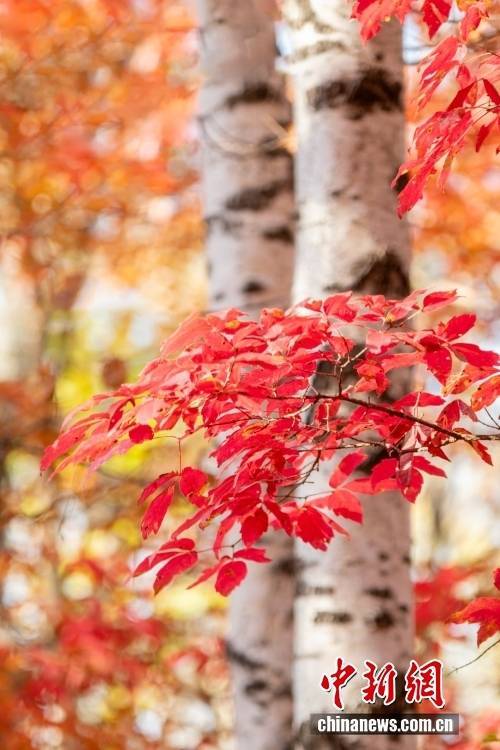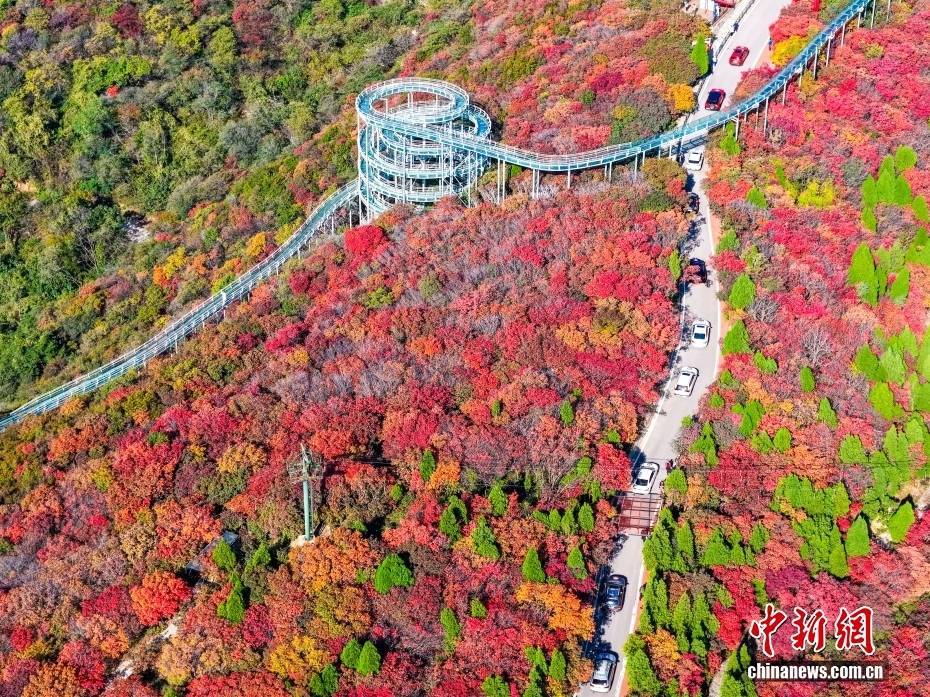 河南许昌栗子园沟红叶如火,漫山绚烂,吸引了众多市民前来打卡。图/CNSphoto 牛书培 摄