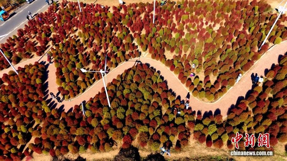 辽宁沈阳植物园内地肤草色彩斑斓,吸引游客前来观赏拍照。图/CNSphoto 黄金昆 摄